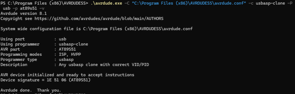 Or Avrdudess for Windows has a bug 2026y (it tries to detect as atmega8 but read write works)